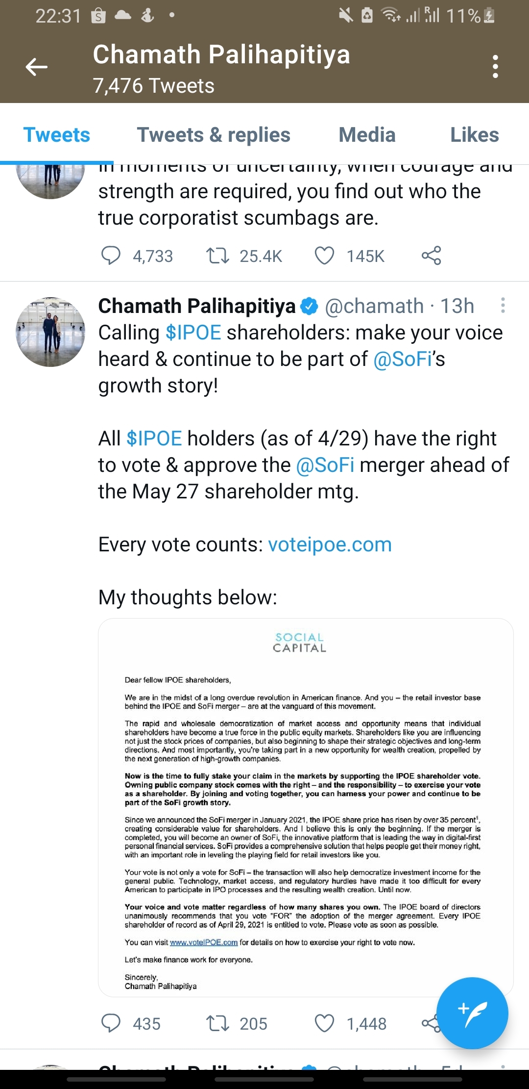 {"i18n":{"language":"zh_CN"},"detailType":1,"isChannel":false,"data":{"magic":2,"id":194164679,"tweetId":"194164679","gmtCreate":1621348467991,"gmtModify":1631884838912,"author":{"id":3546780849196153,"idStr":"3546780849196153","authorId":3546780849196153,"authorIdStr":"3546780849196153","name":"ValueTrader","avatar":"https://static.tigerbbs.com/5abfef61654231603b066fa39ed531ff","vip":1,"userType":1,"introduction":"","boolIsFan":false,"boolIsHead":false,"crmLevel":11,"crmLevelSwitch":0,"individualDisplayBadges":[],"fanSize":211,"starInvestorFlag":false},"themes":[],"images":[{"img":"https://static.tigerbbs.com/4090d14c3fa2be11ef0367c0ed6d7576","width":"1080","height":"2220"}],"coverImages":[{"img":"https://static.tigerbbs.com/4090d14c3fa2be11ef0367c0ed6d7576","width":"1080","height":"2220"}],"extraTitle":"","html":"<html><head></head><body><p><a href=\"https://laohu8.com/S/IPOE\">$Social Capital Hedosophia Holdings Corp. V(IPOE)$</a>可以去voteipoe.com投票了。不过需要证券公司电邮通知信的说。。。</p><p><img src=\"https://static.tigerbbs.com/4090d14c3fa2be11ef0367c0ed6d7576\" tg-width=\"1080\" tg-height=\"2220\"></p></body></html>","htmlText":"<html><head></head><body><p><a href=\"https://laohu8.com/S/IPOE\">$Social Capital Hedosophia Holdings Corp. V(IPOE)$</a>可以去voteipoe.com投票了。不过需要证券公司电邮通知信的说。。。</p><p><img src=\"https://static.tigerbbs.com/4090d14c3fa2be11ef0367c0ed6d7576\" tg-width=\"1080\" tg-height=\"2220\"></p></body></html>","text":"$Social Capital Hedosophia Holdings Corp. V(IPOE)$可以去voteipoe.com投票了。不过需要证券公司电邮通知信的说。。。","highlighted":1,"essential":1,"paper":1,"likeSize":1,"commentSize":12,"repostSize":0,"favoriteSize":0,"link":"https://laohu8.com/post/194164679","repostId":0,"isVote":1,"tweetType":1,"viewCount":1581,"commentLimit":10,"likeStatus":false,"favoriteStatus":false,"reportStatus":false,"symbols":["SOFI"],"verified":2,"subType":0,"readableState":1,"langContent":"CN","currentLanguage":"CN","warmUpFlag":false,"orderFlag":false,"shareable":true,"causeOfNotShareable":"","featuresForAnalytics":[],"commentAndTweetFlag":false,"andRepostAutoSelectedFlag":false,"upFlag":false,"length":103,"xxTargetLangEnum":"ZH_CN"},"commentList":[{"id":4403387,"commentId":"4403387","gmtCreate":1621603524570,"gmtModify":1621603524570,"authorId":3455229807167654,"author":{"id":3455229807167654,"idStr":"3455229807167654","authorId":3455229807167654,"name":"Modi","avatar":"https://static.tigerbbs.com/c4060541c23623f4957ee873fbcbe6f2","vip":1,"crmLevel":2,"crmLevelSwitch":0,"individualDisplayBadges":[]},"repliedAuthorId":0,"objectId":194164679,"objectIdStr":"194164679","type":1,"supId":0,"supIdStr":"0","prevId":0,"prevIdStr":"0","content":"抱歉!昨天50,剛才150+150","text":"抱歉!昨天50,剛才150+150","html":"抱歉!昨天50,剛才150+150","likeSize":0,"commentSize":1,"subComments":[{"id":4404718,"commentId":"4404718","gmtCreate":1621610689093,"gmtModify":1621610689093,"authorId":3455229807167654,"author":{"id":3455229807167654,"idStr":"3455229807167654","authorId":3455229807167654,"name":"Modi","avatar":"https://static.tigerbbs.com/c4060541c23623f4957ee873fbcbe6f2","vip":1,"crmLevel":2,"crmLevelSwitch":0,"individualDisplayBadges":[]},"repliedAuthorId":0,"objectId":194164679,"objectIdStr":"194164679","type":1,"supId":4403387,"supIdStr":"4403387","prevId":0,"prevIdStr":"0","content":"我轉了50+150+150+150+150,你只收到50?","text":"我轉了50+150+150+150+150,你只收到50?","html":"我轉了50+150+150+150+150,你只收到50?","disclaimerType":0}],"verified":10,"allocateAmount":0,"commentType":"valid","coins":0,"score":0,"disclaimerType":0},{"id":4397936,"commentId":"4397936","gmtCreate":1621563337041,"gmtModify":1621563337041,"authorId":3455229807167654,"author":{"id":3455229807167654,"idStr":"3455229807167654","authorId":3455229807167654,"name":"Modi","avatar":"https://static.tigerbbs.com/c4060541c23623f4957ee873fbcbe6f2","vip":1,"crmLevel":2,"crmLevelSwitch":0,"individualDisplayBadges":[]},"repliedAuthorId":0,"objectId":194164679,"objectIdStr":"194164679","type":1,"supId":0,"supIdStr":"0","prevId":0,"prevIdStr":"0","content":"贈幣600,請查收。","text":"贈幣600,請查收。","html":"贈幣600,請查收。","likeSize":0,"commentSize":3,"subComments":[{"id":4404753,"commentId":"4404753","gmtCreate":1621610886171,"gmtModify":1621610886171,"authorId":3455229807167654,"author":{"id":3455229807167654,"idStr":"3455229807167654","authorId":3455229807167654,"name":"Modi","avatar":"https://static.tigerbbs.com/c4060541c23623f4957ee873fbcbe6f2","vip":1,"crmLevel":2,"crmLevelSwitch":0,"individualDisplayBadges":[]},"repliedAuthorId":3546780849196153,"repliedAuthor":{"id":3546780849196153,"idStr":"3546780849196153","authorId":3546780849196153,"name":"ValueTrader","avatar":"https://static.tigerbbs.com/5abfef61654231603b066fa39ed531ff","vip":1,"crmLevel":11,"crmLevelSwitch":0,"individualDisplayBadges":[]},"objectId":194164679,"objectIdStr":"194164679","type":1,"supId":4397936,"supIdStr":"4397936","prevId":4404642,"prevIdStr":"4404642","content":"二篇文章,各轉300。","text":"二篇文章,各轉300。","html":"二篇文章,各轉300。","disclaimerType":0},{"id":4404733,"commentId":"4404733","gmtCreate":1621610765791,"gmtModify":1621610765791,"authorId":3455229807167654,"author":{"id":3455229807167654,"idStr":"3455229807167654","authorId":3455229807167654,"name":"Modi","avatar":"https://static.tigerbbs.com/c4060541c23623f4957ee873fbcbe6f2","vip":1,"crmLevel":2,"crmLevelSwitch":0,"individualDisplayBadges":[]},"repliedAuthorId":3546780849196153,"repliedAuthor":{"id":3546780849196153,"idStr":"3546780849196153","authorId":3546780849196153,"name":"ValueTrader","avatar":"https://static.tigerbbs.com/5abfef61654231603b066fa39ed531ff","vip":1,"crmLevel":11,"crmLevelSwitch":0,"individualDisplayBadges":[]},"objectId":194164679,"objectIdStr":"194164679","type":1,"supId":4397936,"supIdS