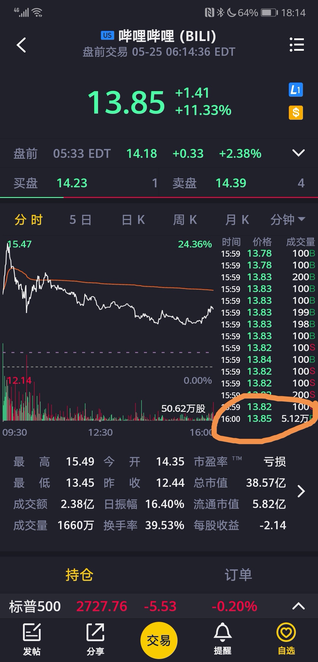 最后一个大买单 5.12万