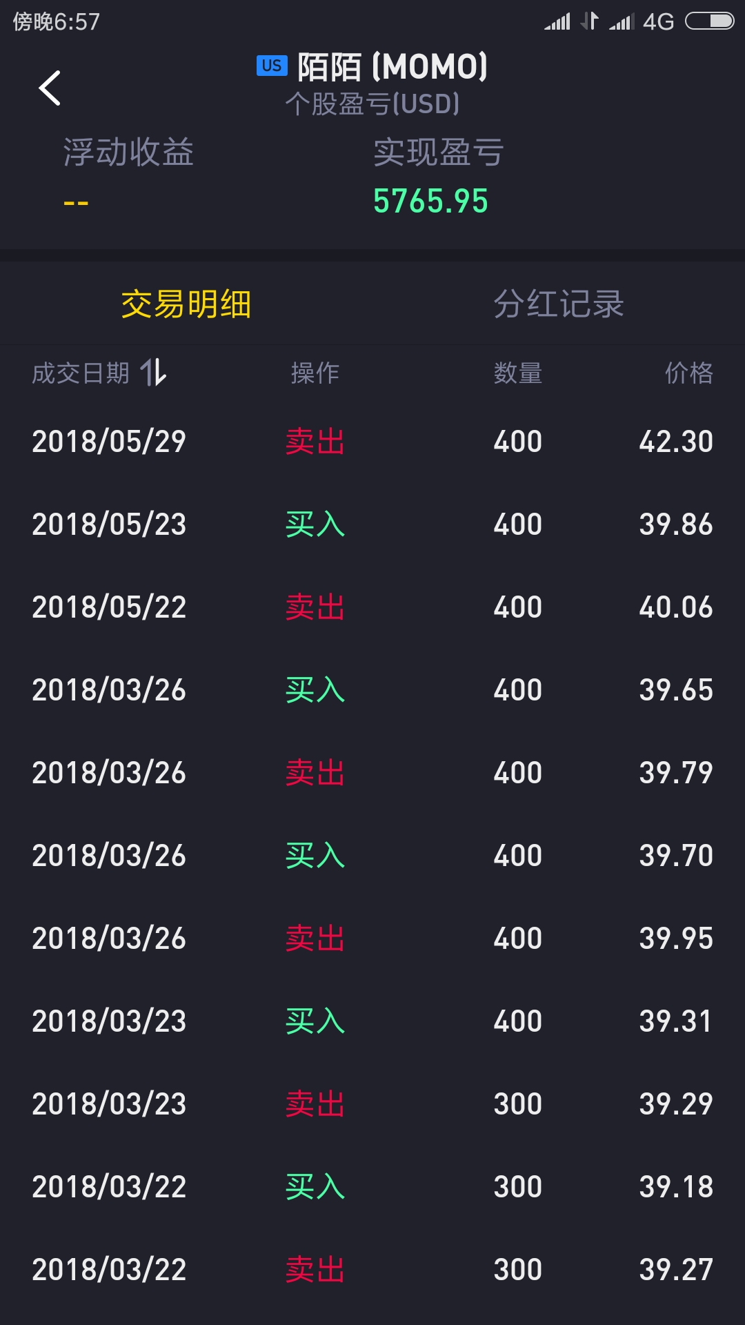 $陌陌(MOMO)$盘前42.3落袋为安了。两年内买卖陌陌几十次,有快进快出赚几十,也有被套半年最多亏接近2万美金最后赚小钱出掉,没有一次亏损卖掉。可惜在陌陌练习这么久,还是觉得自己水平太差,玩不过机构