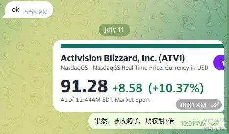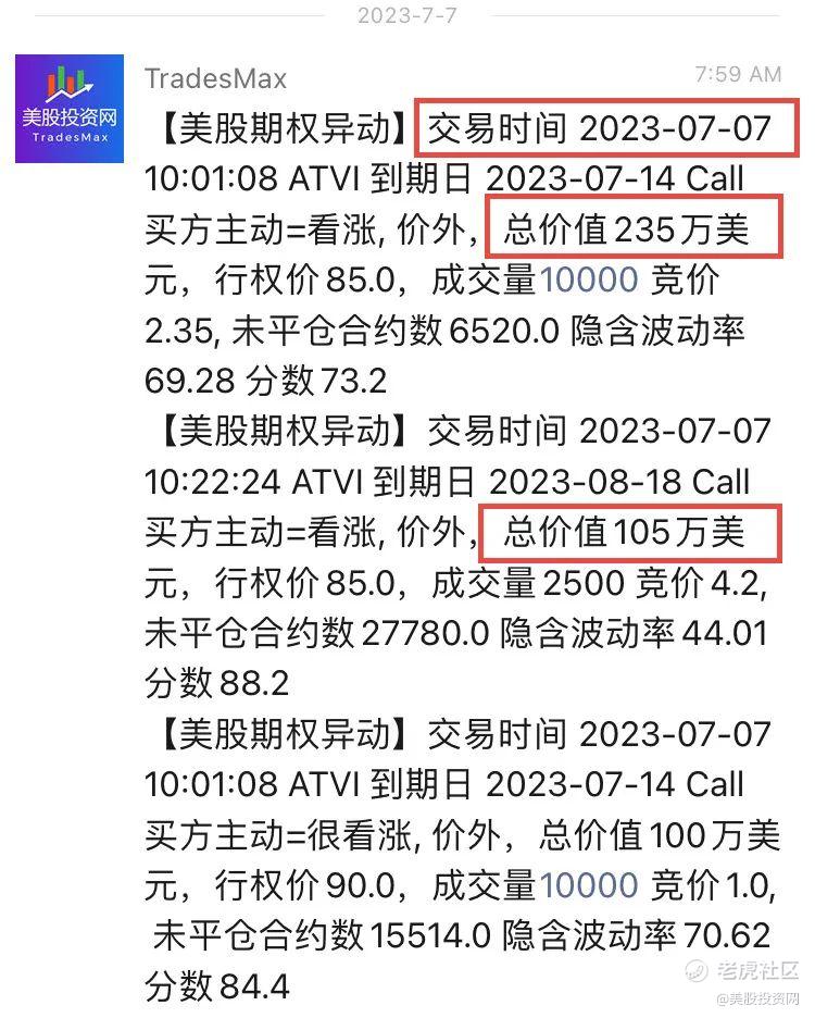 ATVI今日股价大涨超10%,直接来到2021年7月以来的最高水平。我们的期权直接翻三倍!