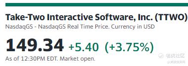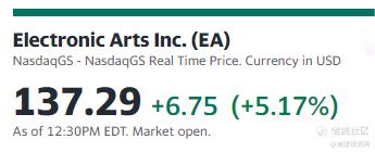 ATVI的大涨也带动了其他游戏相关的美股跟着涨,比如) $电子艺界(EA)$ 大涨5.17%,视频游戏发行商 $Take-Two Interactive Software(TTWO)$ 涨3.75%