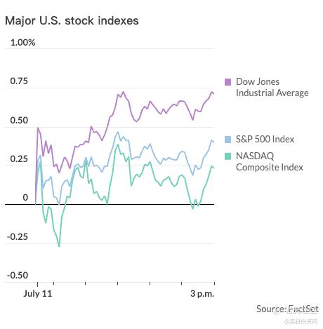 美股三大股指周二集体收涨,投资者等待周三公布的6月份CPI最新通胀数据。