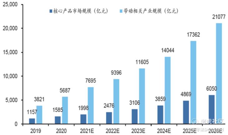 根据艾瑞咨询《中国人工智能产业研究报告》预测,到2026年,中国人工智能带动相关产业规模将超过2.1万亿元,2021-2026年复合增速超过22%。