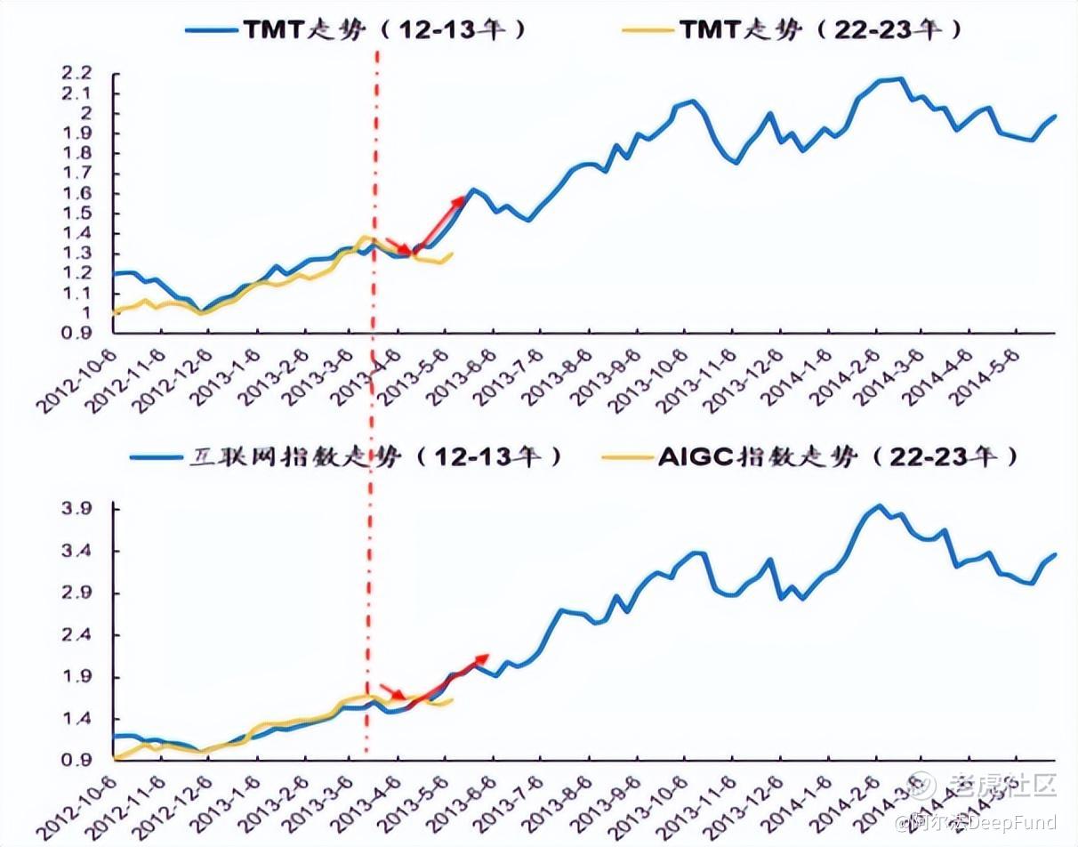 所以,即便是一些AI概念股股价较低点已经翻倍,却依然能吸引资金进场。这种貌似后知后觉的追涨行为,实际上在十年前的互联网牛市中也曾出现过。