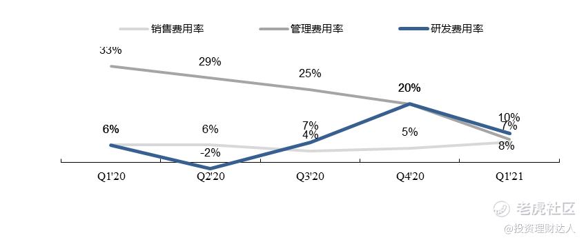 - 21Q1研发费用为1.55亿美元,费用率为10%,环比增长60个百分点
