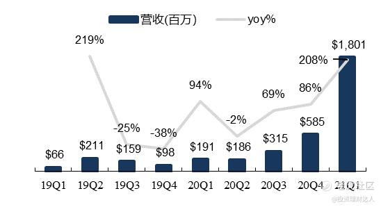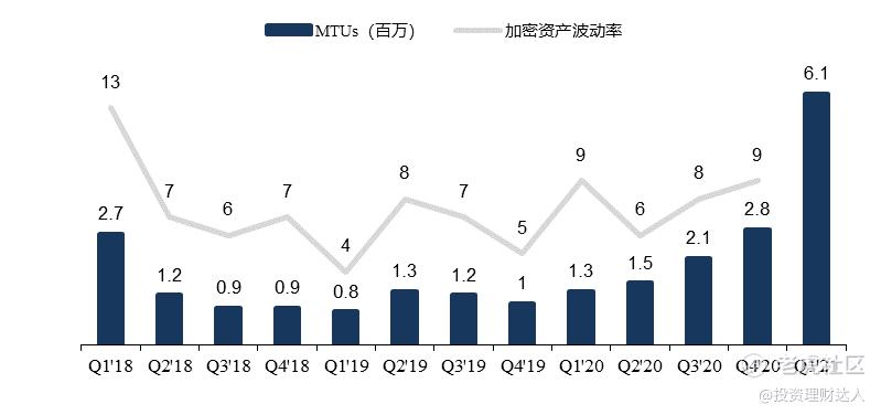 - 21Q1Coinbase实现营业收入18亿美元(+yoy208%),净利润为16亿美元