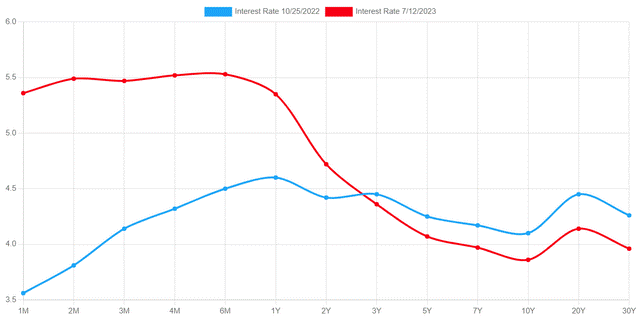 收益率曲线比较(UsTreasuryYieldCurve.com)