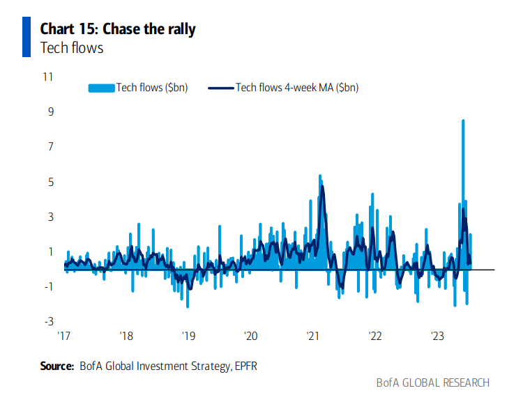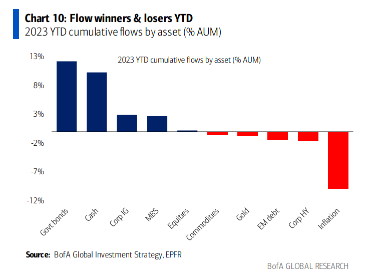 所以年初的时候说美国萧条,确实太早了,当时市场都觉得美国2023年要萧条,很少有萧条在这么预期充分的时候到来,当时BOA有一个图叫做“Most expected recession”,所有人都觉得萧条要来的时候往往仓位都很低,那风险自然就很低。