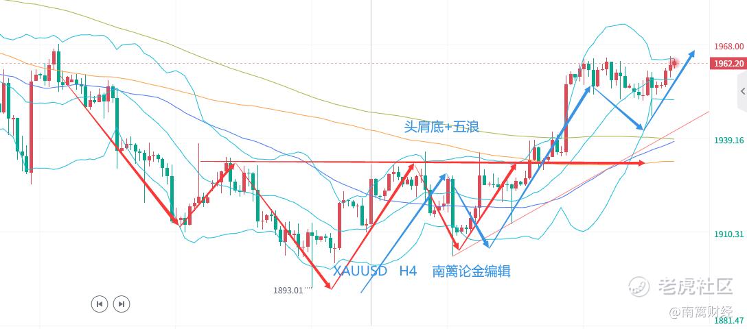 其次,4H中的头肩底,一倍量位于1970—75区间内;除此之外,还有从1893开启的五浪反弹,第二浪和第四浪基本等长,第三浪为最长,这几乎和波浪形态相贴合。所以现在是在走第五浪的最后反弹。