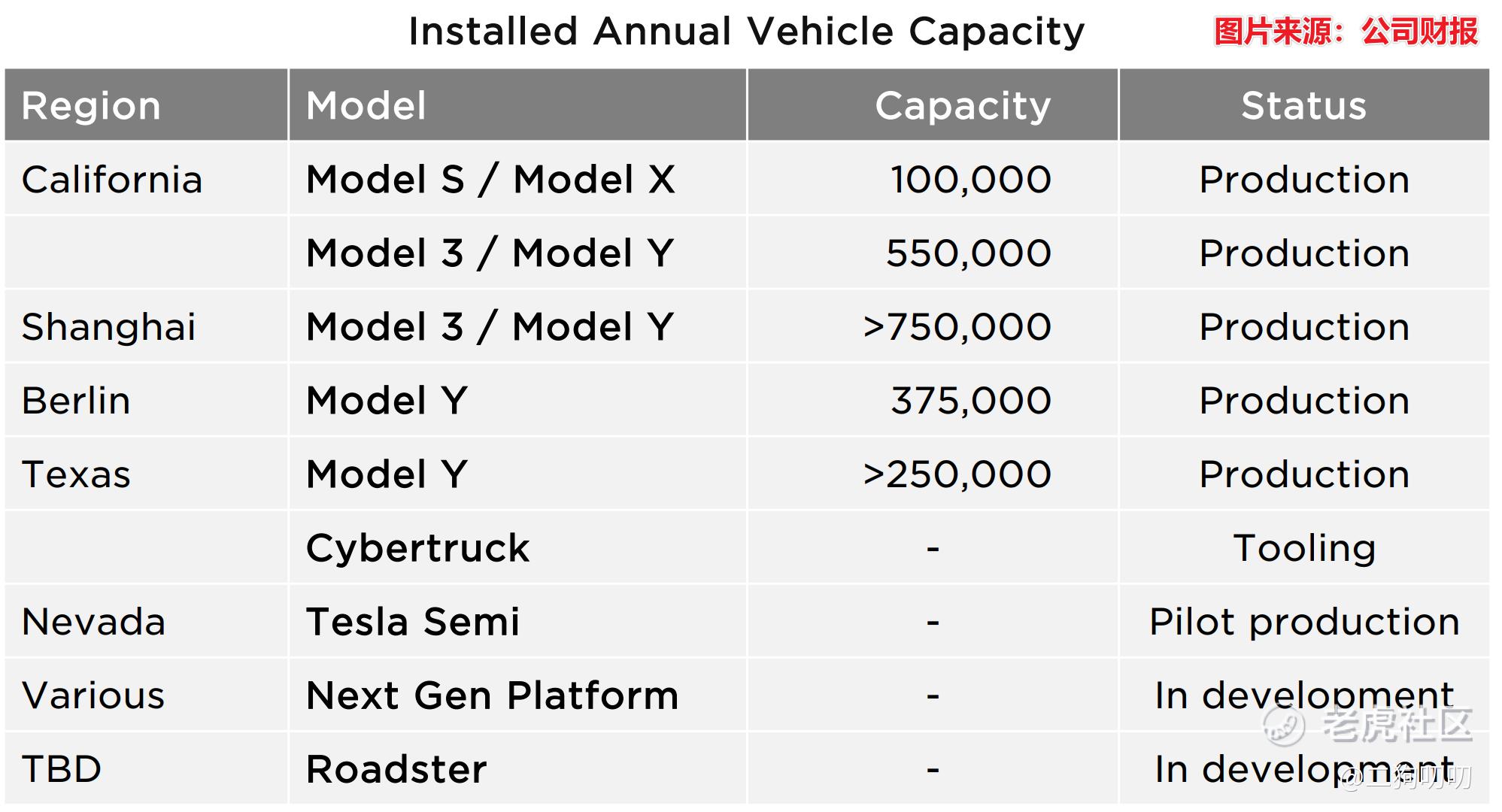 (1)加州老厂:特斯拉的最老的根据地,产能已经达到65万/年,其中Model 3/Y 产能由已经达到55万/年,Model S/X 产能依旧还是10万/年。