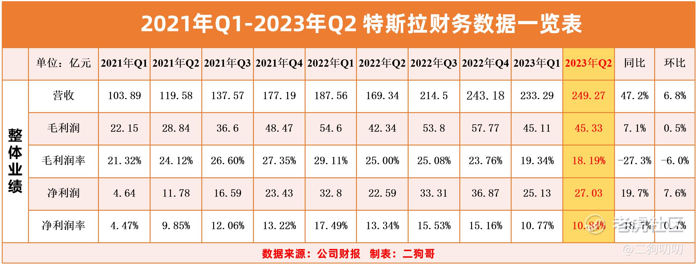 北京时间2023年7月20日美股盘后,二狗哥的信仰之股——$特斯拉(TSLA)$ 公布了2023年第二季度财报,除了毛利率没有达到华尔街那帮老头的预期之外,其他似乎也没啥太大毛病。