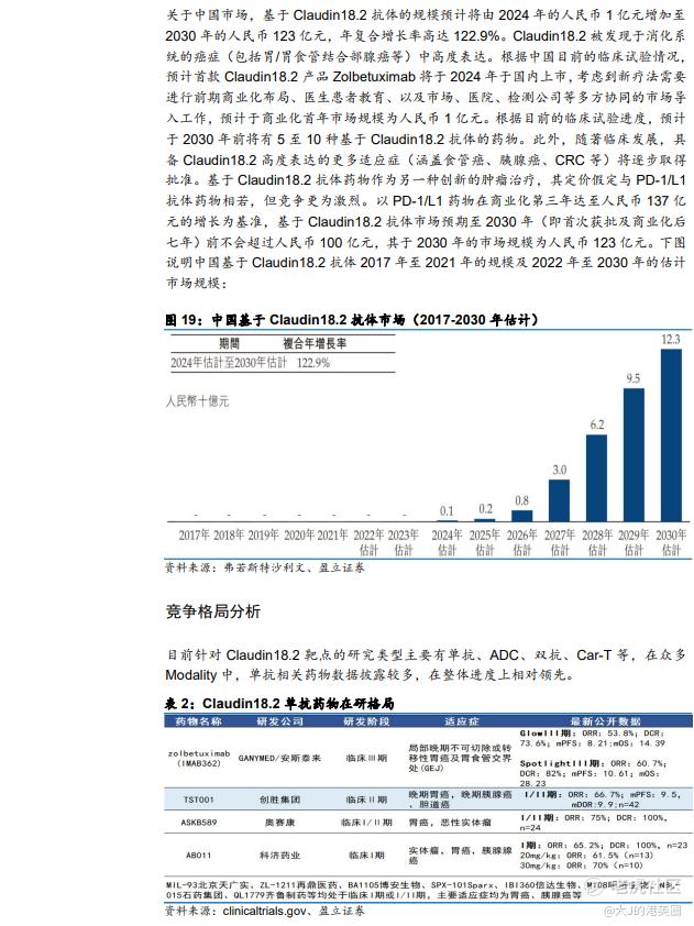 我们认为,2靶点在胃癌、胰腺癌等领域潜力巨大,DS8201的成功使市场对于ADC过分预期,导致对于单抗确定性的低估,公司作为Claudin18.2单抗行业领跑者的价值未被市场充分挖掘。