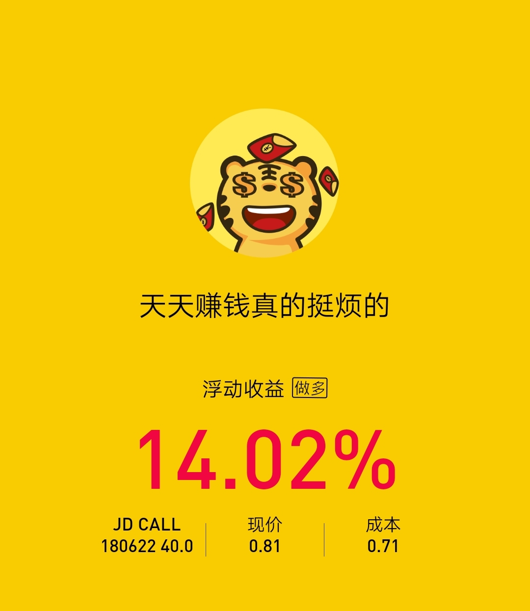 $JD 20180622 40.0 CALL(JD)$ 最近几年了一直是京东买得多 应该和偶尔持有京东没有关系 当你在京东买了大件的家电以后基本就和这个平台的信任感不一般了 京东家电的no1 应该会带来其他品类的正循环 短期股价波动和逻辑分析应该没有参考意义 发表下看法 这次618买得不少 看到优惠券就想用