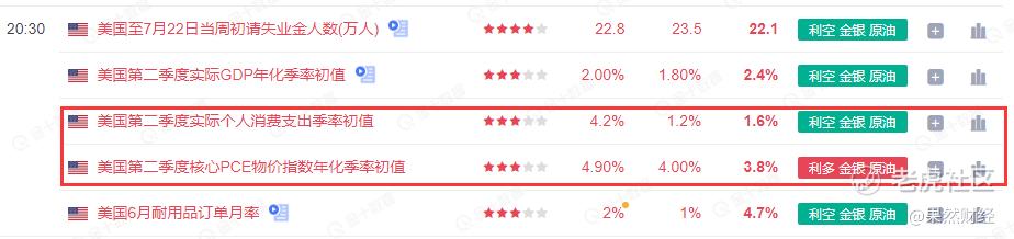 然后我们来细看昨天的一批数据,除了看到了一大批利空黄金的结果,我还看到了第二季度的核心PCE和个人消费支出,能明显的看出来这两个数据在市场预期特别低的情况下还有着明显的下降,说明了当前的通胀表现下降速度喜人,也印证了这轮加息就是美联储利率的顶点。