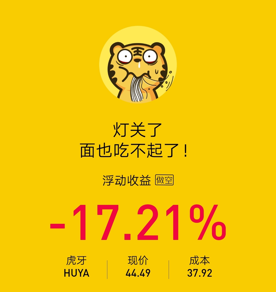 $虎牙(HUYA)$ 希望能在50元的时候能有券继续空,做空不易,虎牙流通盘小,短期内崩盘不合实际,打算持有3到6个月。