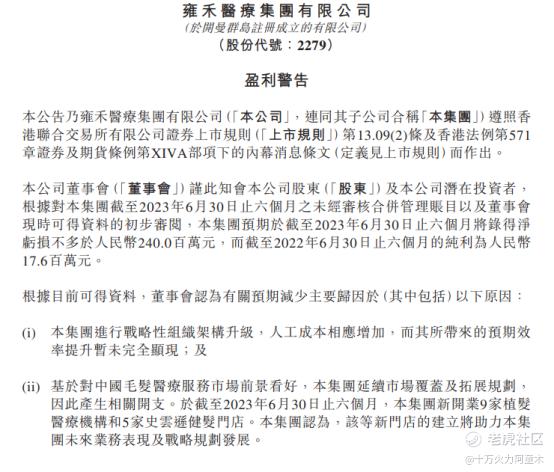 今天港股收盘,雍禾医疗发布了2023年上半年业绩预告,显示上半年雍禾亏损2.4亿元。同时,在今年上半年,雍禾继续加速扩张。