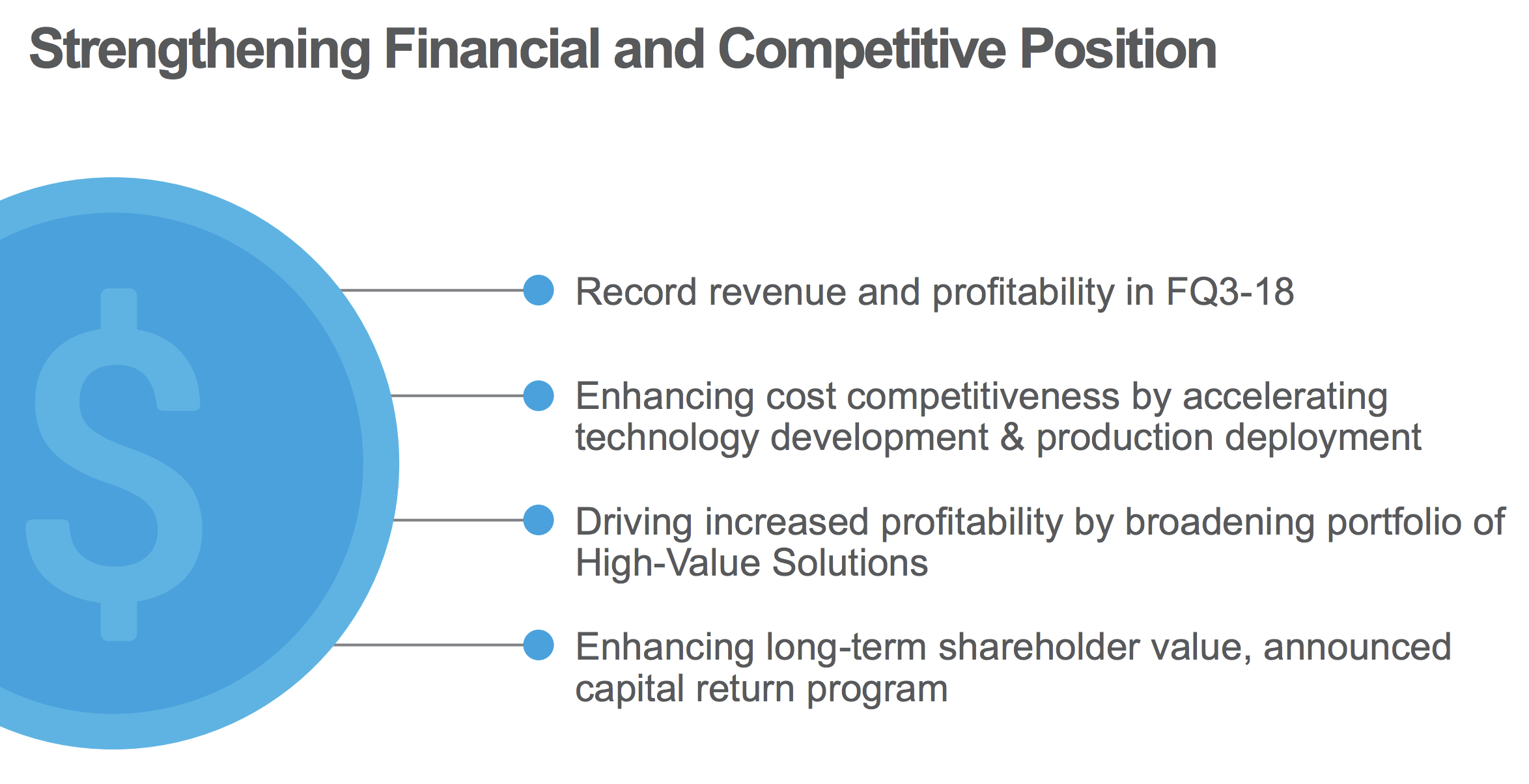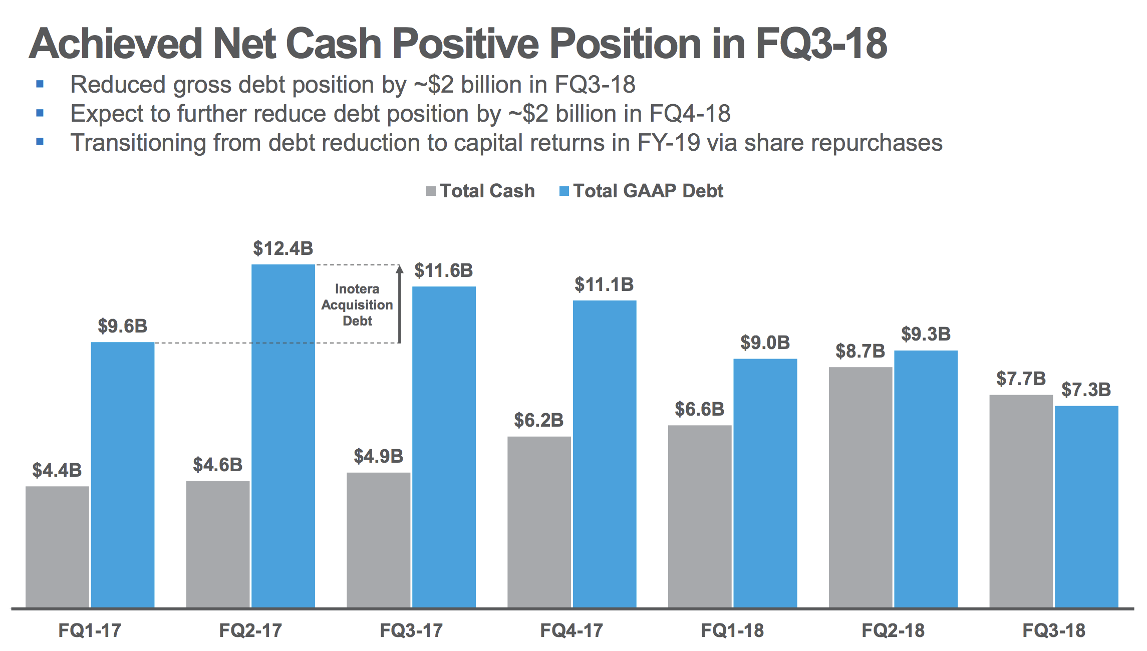 由上图可见,FQ3美光已有现金大于负债。美光计划下一季度继续减少负债20亿美金。19财年开始,美光将转而用现金回购股票回馈股东。