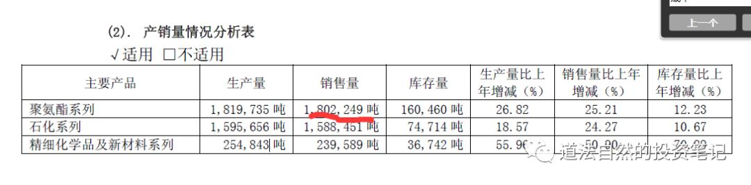 从实物量的销售来看,或许能够更加好的判断万华的销售未来增速。这个实物量大概在25%左右。