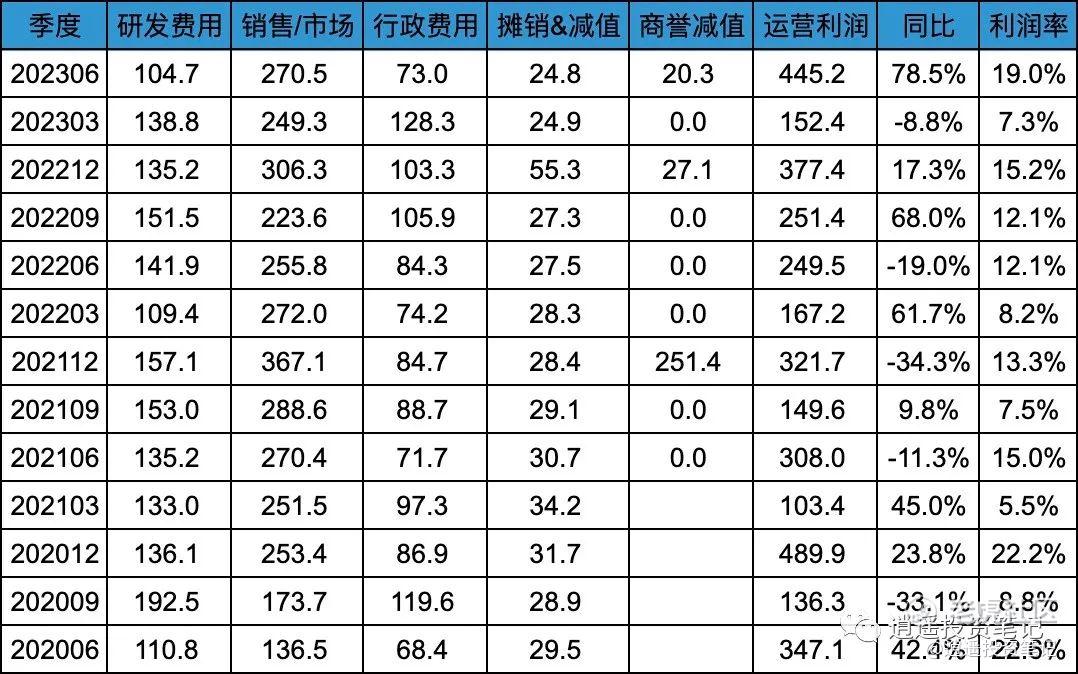 2、因商誉减值并非每个季度发生,所以为方便对比数据,运营利润统一剔除了商誉减值影响。