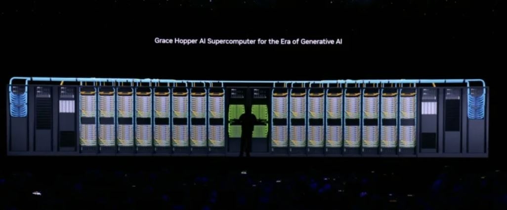 老黄演讲是就展示了一台,以256组GH200组成超级电脑,可发挥12倍算力,同时电力损耗更低,相比单纯以CPU运作模式可带来高达20倍的能源使用效率。
