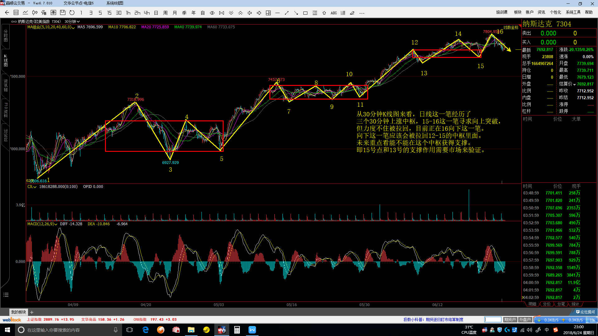 $纳斯达克(.IXIC)$ 现已经出现了见顶信号,目前来看,5分钟结构已经走坏,30分钟结构正在走坏的路上,未来几天重点看30分钟向下一笔能不能够得到有效支撑,下面上图