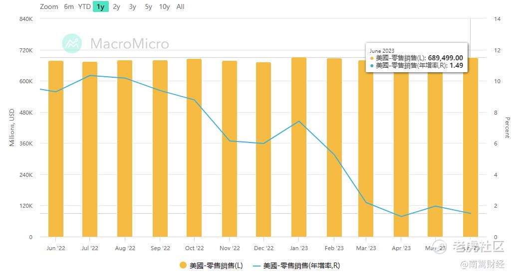 本周最重要的数据在周二就会公布,零售销售月率,若参考消费者信心指数的下降,捋一下也就是说由于通胀的反弹,消费者认为加息继续,从而伤害经济,闭环自然是对消费信心的伤害。结合到前期公布的ISM订单量的增加,市场仿佛和消费者预期并不相同~这个相悖的地方,我们在明天的文章及直播中会再整理,欢迎各位到来。
