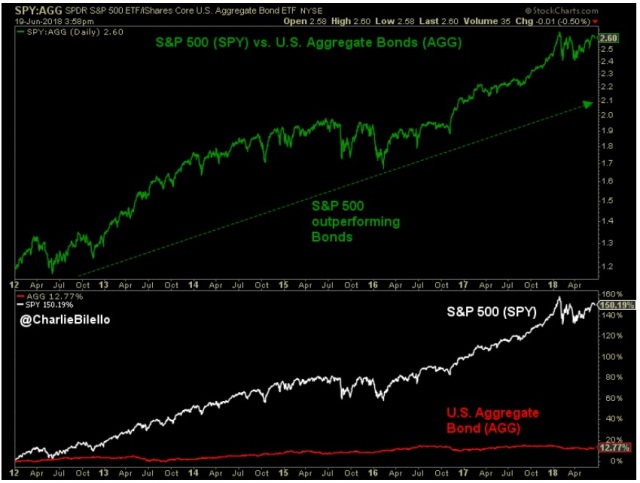 相对债券的收益回报差就更大了,最大的美国债券ETF $(AGG)$从2012年开始平均每年蜗牛似地上涨1.9%,而标普500大盘同期是平均每年15.3%: