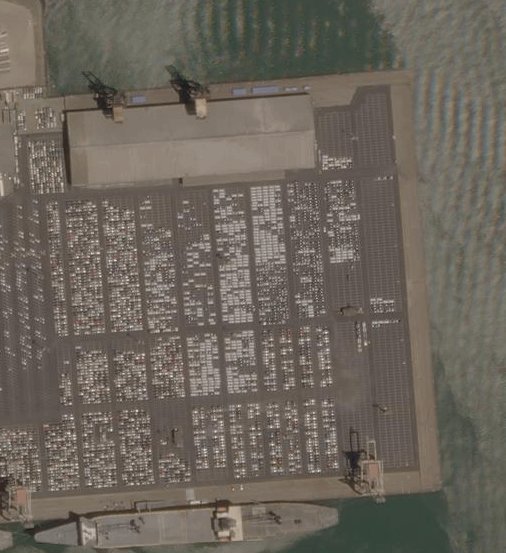 5、近期,特斯拉的热度有一定的回落,股价也表现出了较大幅度回调。但二季度即将结束,所有人都在等待真实的产销数据。有网友不断爆出特斯拉各地的库存车辆大幅增加。下图是卫星拍到的某港口特斯拉Model 3待发图片。