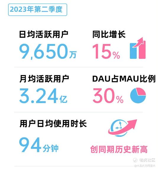 用户日均使用时长创下历史新高,达到94分钟,促进社区总使用时长同比增长22%;