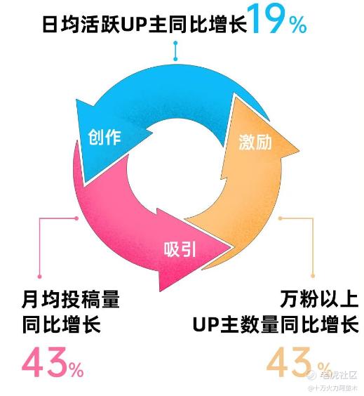 日均活跃UP主数量同比增长19%,月均视频投稿量同比增长43%;
