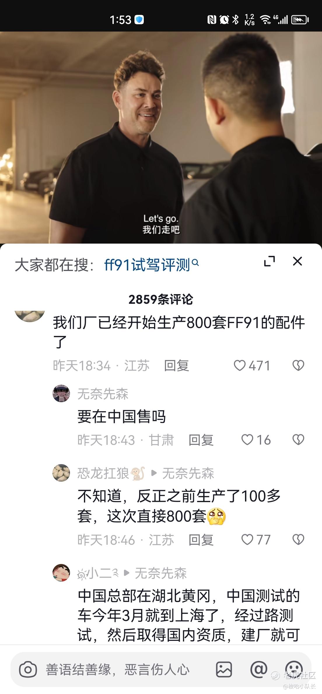 我们公司预定了一万台成品车,预计会给ff带来一万亿的利润