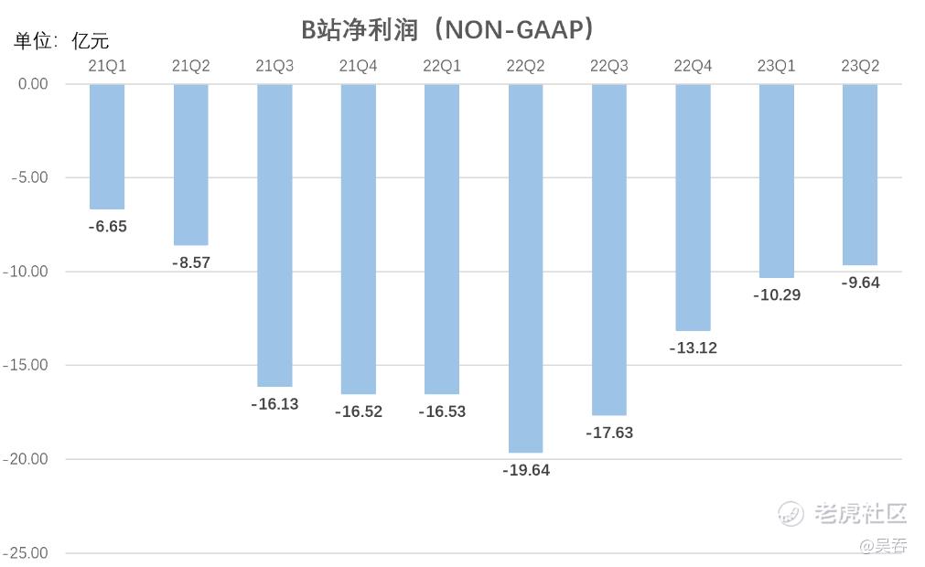 净利方面,B站亏损显著收窄,23Q2净亏损为9.64亿元,较2022年同期收窄51%,一年时间减亏了一半。