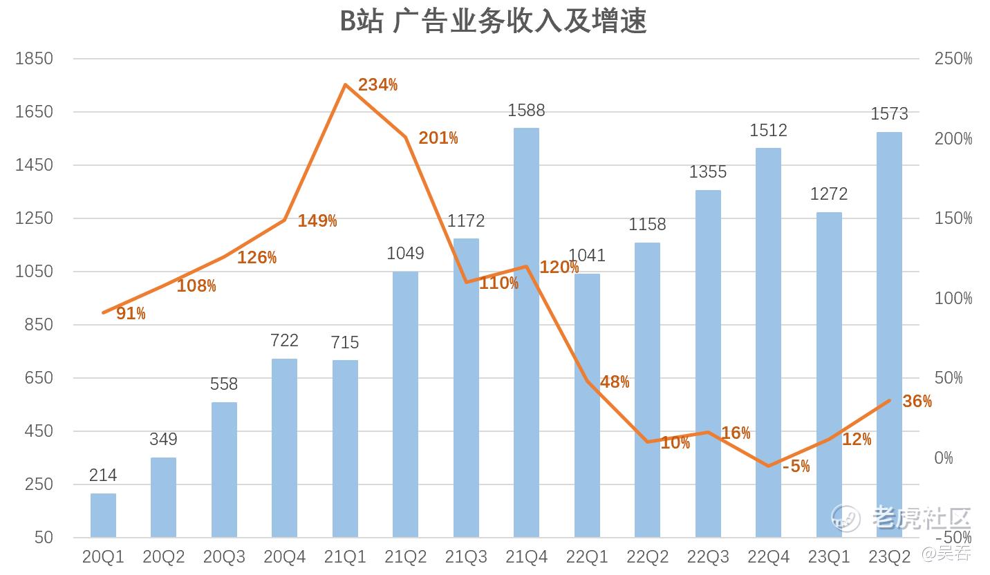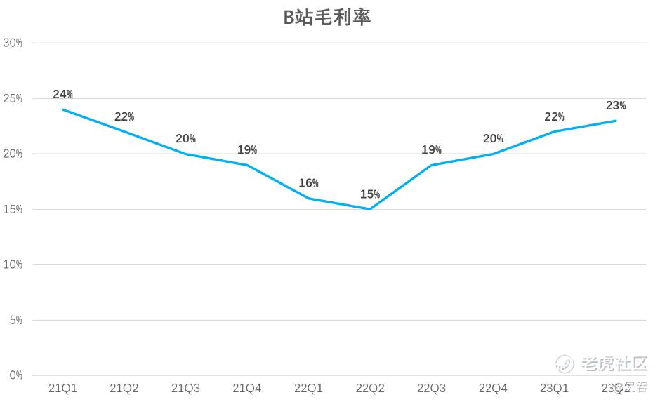 今年年初B站就已经明确2023年的财务目标是“增毛利,减亏损”,如今来看已经颇有成效。Q2,B站毛利润同比增长66%,毛利率连续四个季度持续提升,从15%提升至23.1%。