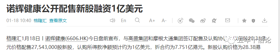 而总体是有20多亿的现金,相比于2022年同期是增加4亿现金。但是,2023年年初的时候,诺辉健康是融资了近1亿美金(约7.75亿港币)的(如下图所示),所以,如果这样的话,诺辉健康的现金消耗非常大!不经要问,融资的钱哪里去了?