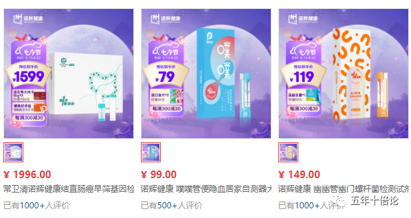 公司共有三款产品,包括常卫清(用于肠道癌症体外检测,京东价:1996元),噗噗管(用于检测大便隐血,京东价:99元),幽幽管(用于体外自测检测幽门螺杆菌,京东价:149元),这三款产品的销售渠道包括:医院、体检机构、电商平台等。