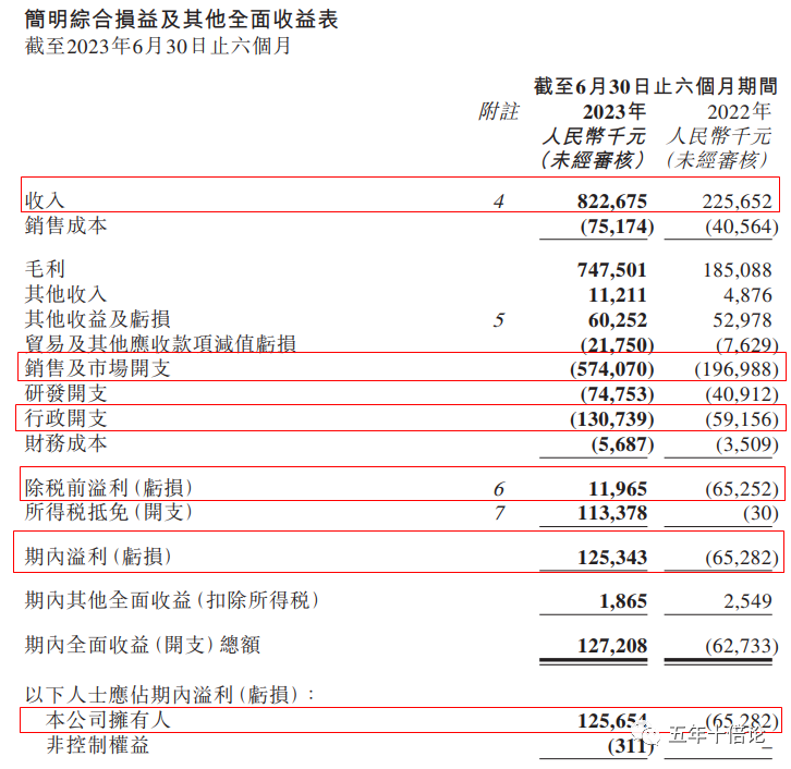 通过利润表可以非常清楚的看到,公司的“销售及市场开支”占比和增长都非常大,2022年销售及市场开支只有1.97亿,2023年直接飙升到5.74亿元,同比增速为191%,不过没有超过营收的增速。其它增速均比较正常,但是最终的税前利润其实只有1196万,远比归母净利润和经调整净利润低,但是无论如何讲,公司实现了由亏转赢,成绩还不错。