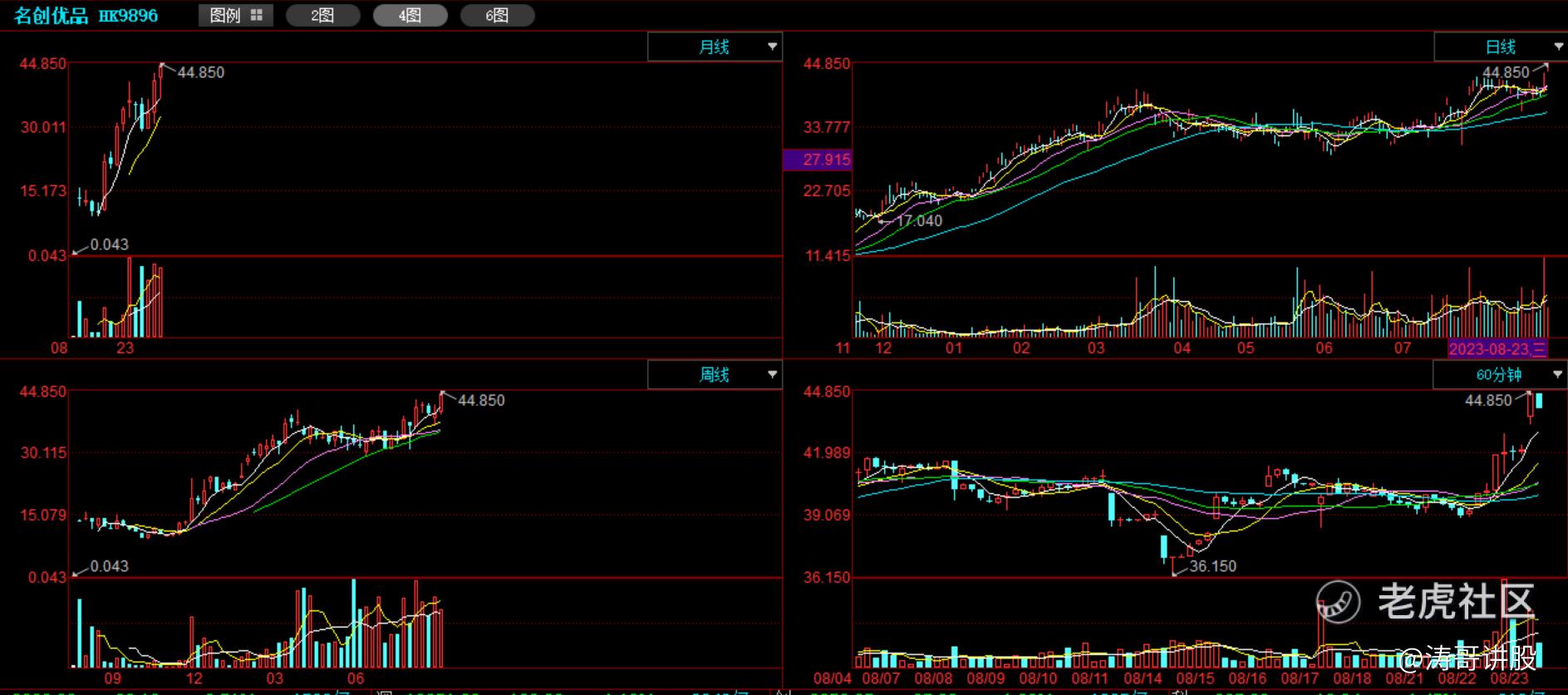 2、在操作层面上,60分钟和日线级别的技术指标和走势相互呼应,主力资金净流入,短期看多。中长期来看,周线和月线的走势一致,但月线级别的ZJTJ指标显示主力资金正在撤离,综合考虑基本面因素,门店数量和单店收入的增长是收入的主要驱动力。根据2023年7月的业务数据表现,平均单店GMV仍然保持着快速增长,尤其是海外业务GMV同比增长约50%,收入增长仍然强劲,因此中长期依然看好。远期需要密切关注收入增长驱动要素的变化。