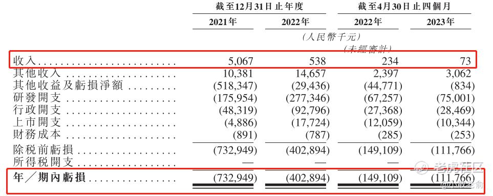 接下来看看公司经营情况,公司从2020~2022年的营业收入分别是119.1万、506.7万,53.万,2021年营收同比增长-89.38%;2020~2022年的净利润分别是-6.61亿、-7.33亿、-4.03亿,2022年的净利润同比亏损收窄45.03%。公司还没有产品实现商业化,目前还处于亏损阶段。