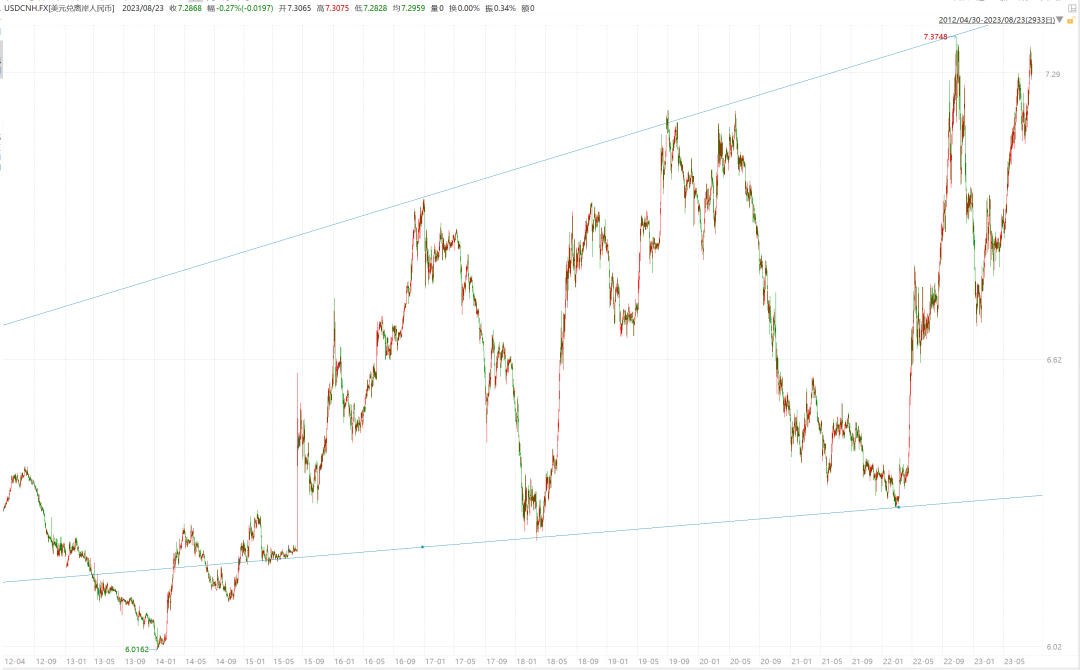 人民币自811汇改以来,是一个巨大的宽幅震荡贬值趋势,我觉得这个趋势是持续的,但这不意味着你就可以一直说这个逻辑,你在6.4空人民币,你很牛逼,但你在7.2用什么人民币宽幅震荡贬值的逻辑去空人民币,可能就会有风险。