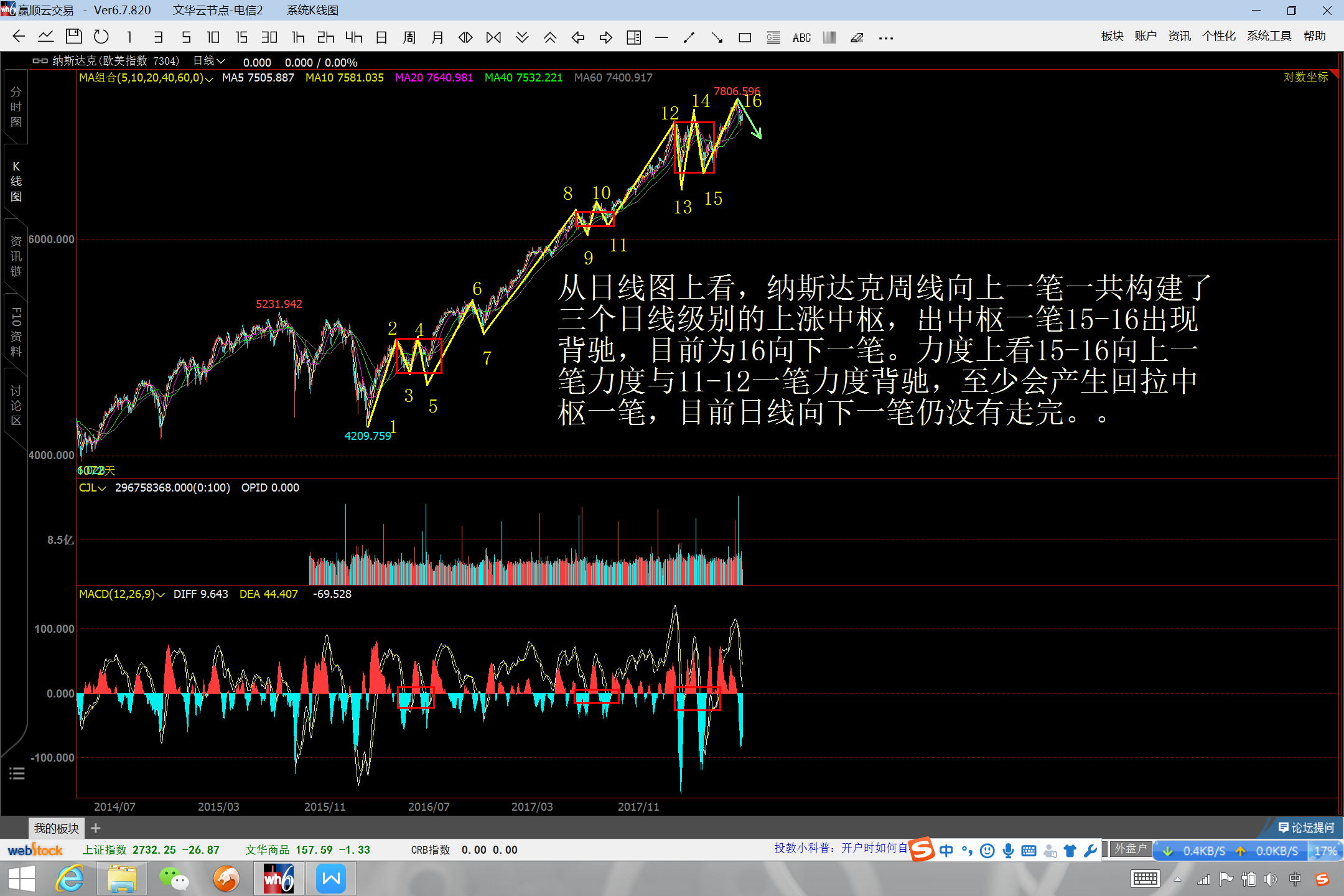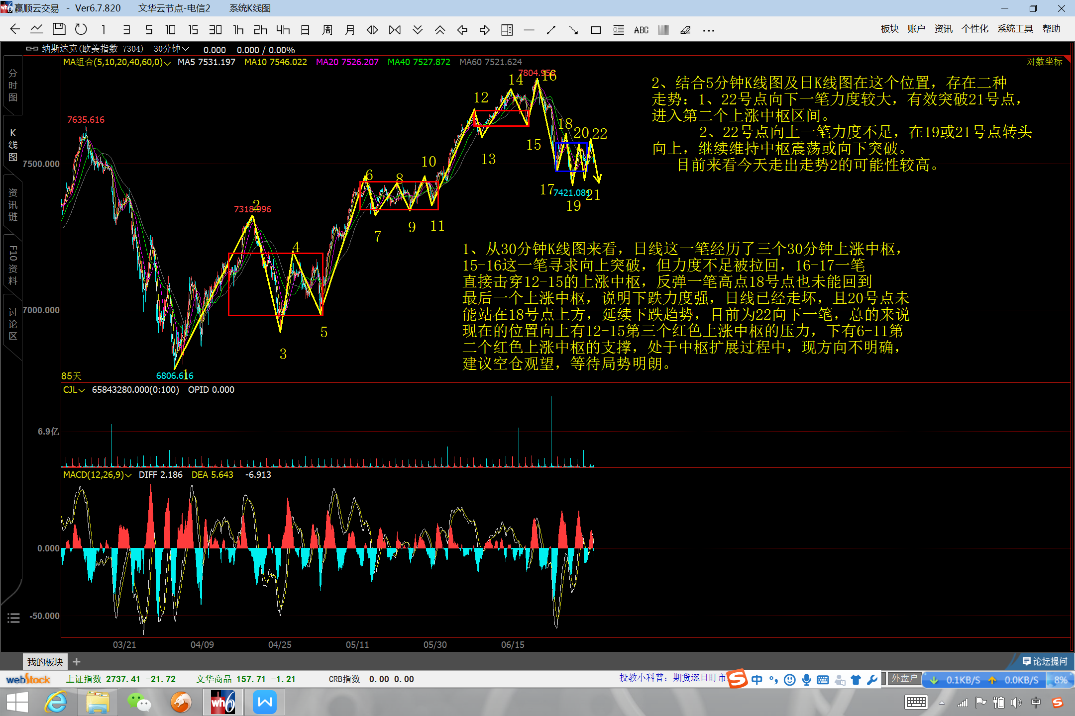 $纳斯达克(.IXIC)$ 昨天的走势看依然是中枢维持,看现在的情况要等7.6征税落地以后才能选择方向了,目前来看为30分钟向下一笔,指数运行到这里建议空仓观望,少操作多看。从之前的走势看,我在这个位置是有偏向性的,我认为在这里持续震荡后,突破方向依然会向下,我认为日线回拉中枢一笔依然没有结束。