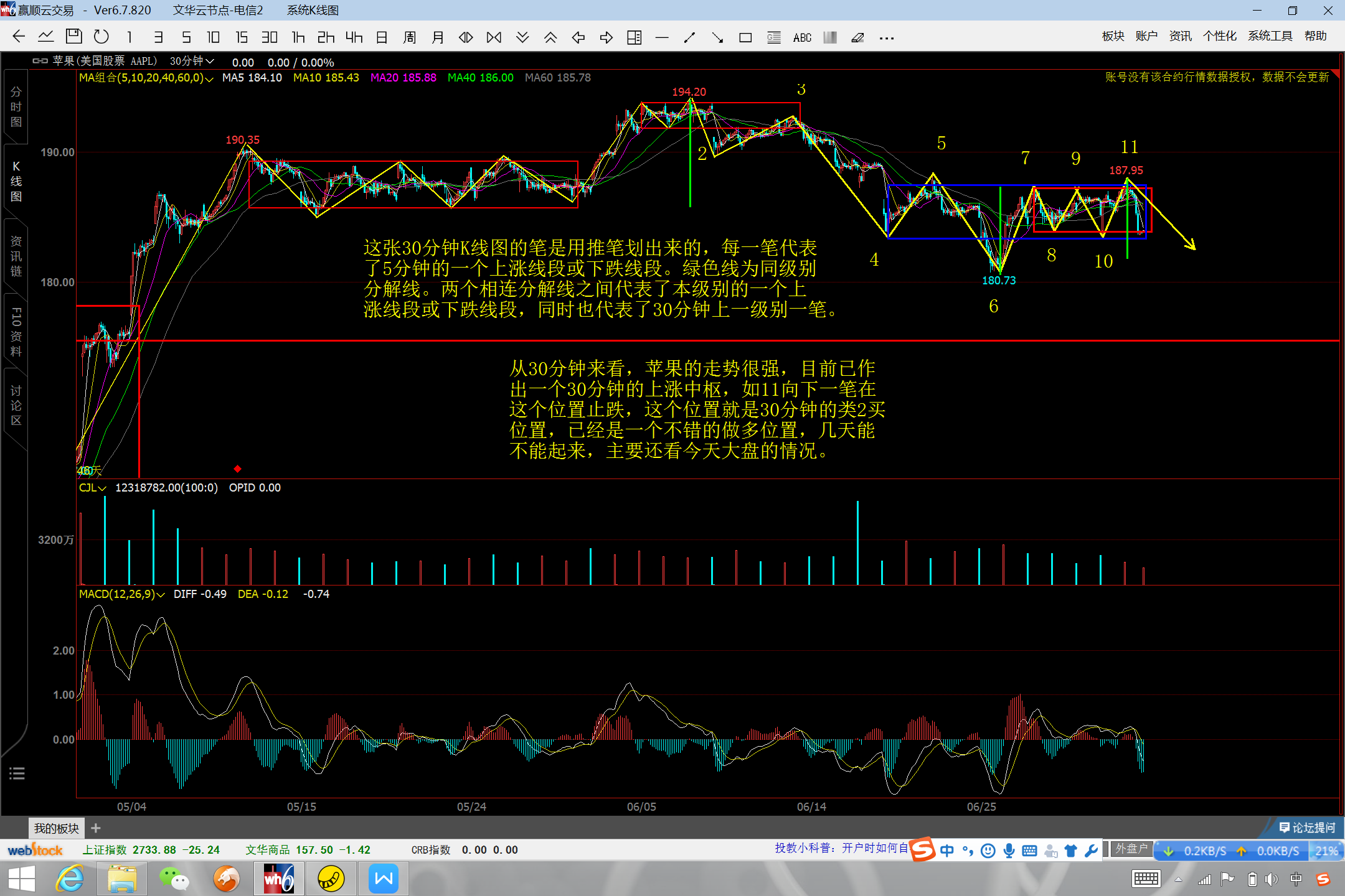 $苹果(AAPL)$ 今天来说说苹果,从最近的走势看,苹果明显要强于纳指,目前所处的位置为30分钟的类2买,虽然从市场环境的因素看,这个类2买可能会启动失败,但换个角度看,在大盘弱势的情况,依然做出了30分钟的类2买,呈现了多头形式,这背后的原因也值得我们深思。如果后期大盘能够起来,预计苹果应该会成为引领这波上涨的风向标,所以接下来我们应该重点关注这只股票。