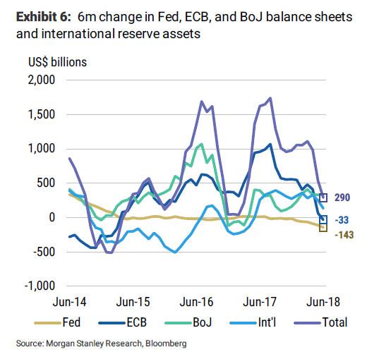在这个问题上,摩根士丹利和美国银行、德意志银行等金融机构一样,他警告称,由于央行加快抽出流动资金,主要市场风险的发生概率增加。从近日开始,美联储的资产负债表规模将以每个月500亿美元的速度缩小,而上个季度为每个月300亿美元。