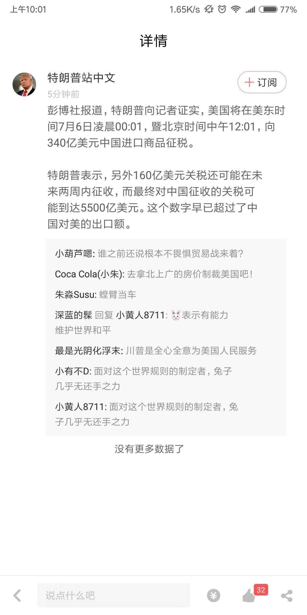 特朗普是在当地时间7月5日,在空军一号上向多位记者作出上述表示的。与此同时,美国贸易代表办公室在电子邮件声明作出了同样的表态。