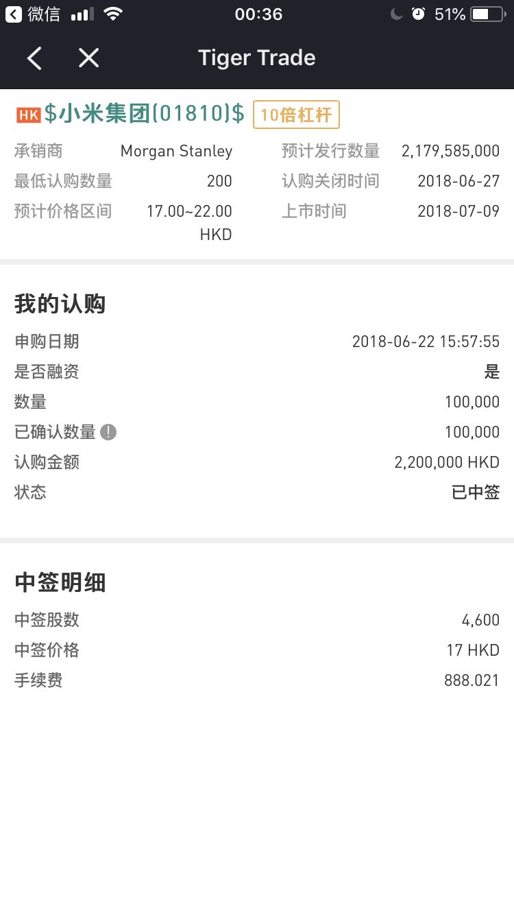 $小米集团(01810)$ 中签晒一晒,浪费了好多融资利息钱,A股打新先认购后付款这点还是比港股好。