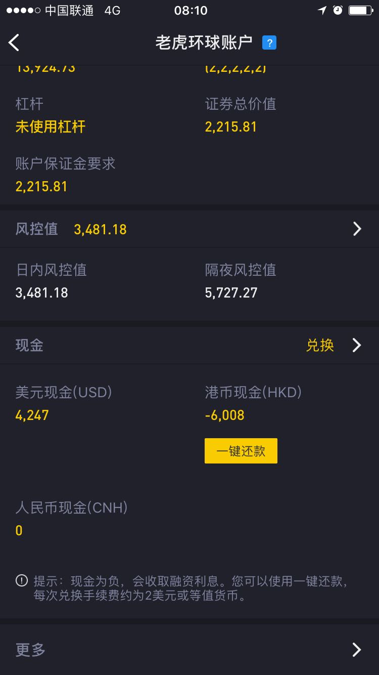 港币资金不知道怎么的,我的纸之前-5过了两天就-65了,客服说自动还款清零,可tm那是我的manei,坑坑坑