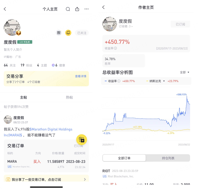 想知道她如何取得这样的收益率的吗?现在只要点击她头像下方的交易分享模块,就可以进入她的作者主页并订阅了!这里可以查看最新的交易订单和持仓列表,在她交易时,更可以收到提醒通知!