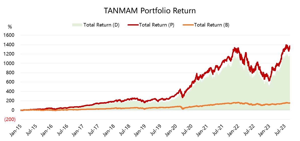 我们将这权重最大的7家公司合成一个投资组合,称之为“TANMAM”组合。