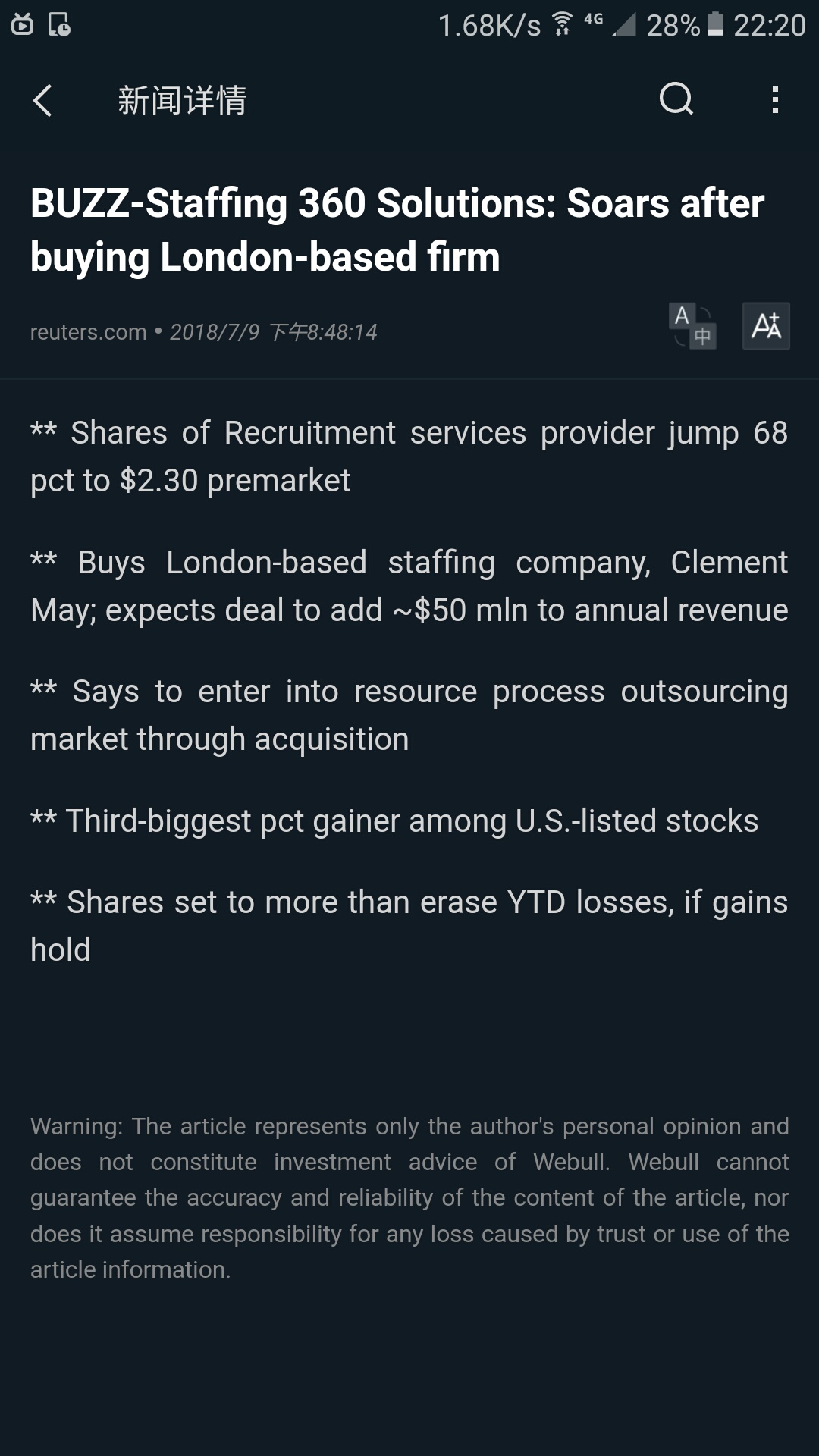 $Staffing 360 Solutions Inc.(STAF)$@小虫子的人 @Tony特别帅 。。