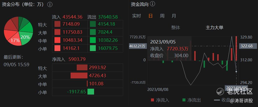 主力资金:9月5日资金净流入5903万,其中主力净流入7720万;