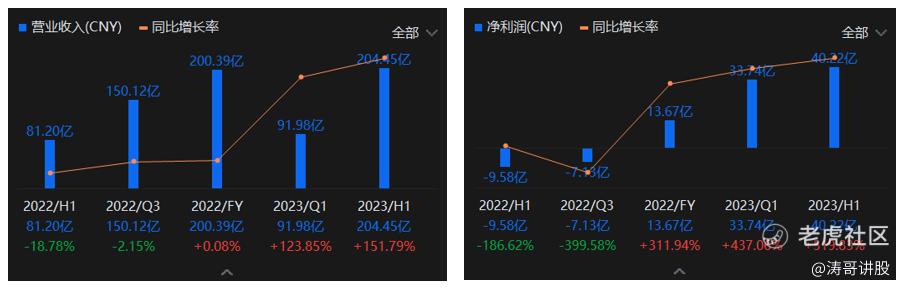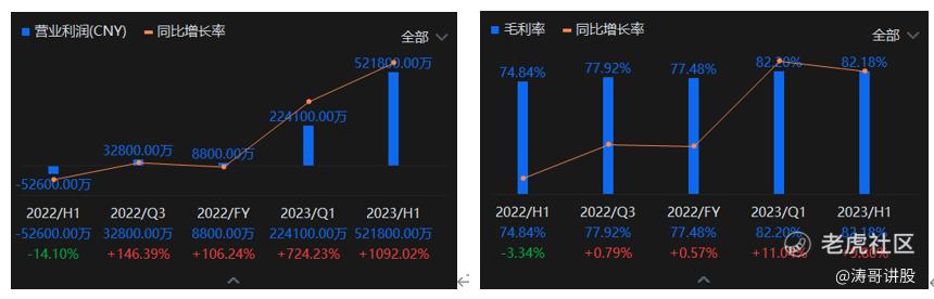 拆分季度来看,2023Q2,营业成本为20.07亿元,毛利率为82.15%,较去年同期增和6.48个百分点;2023Q2营业费用62.63亿元,费率占比55.69%,较去年同期24.14个百分点,或受同期疫情期间收入基数较低影响。2023Q2营业利润为29.77亿元,去年同期为亏损1.67亿元。